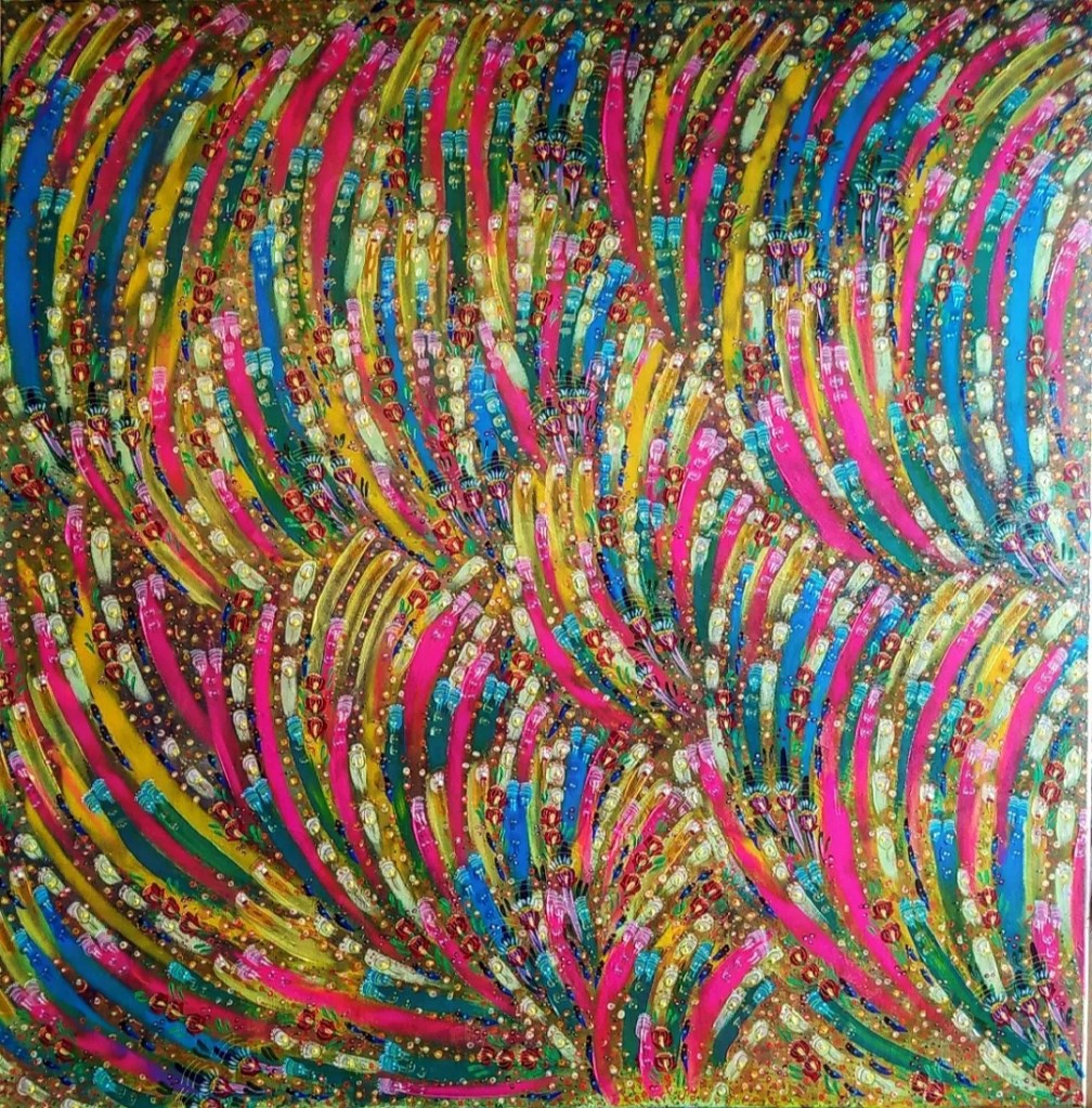 106 – “gioisce il corpo e l’anima” acrilico su tela 100×100 cm 1/07/2022 – disponibile